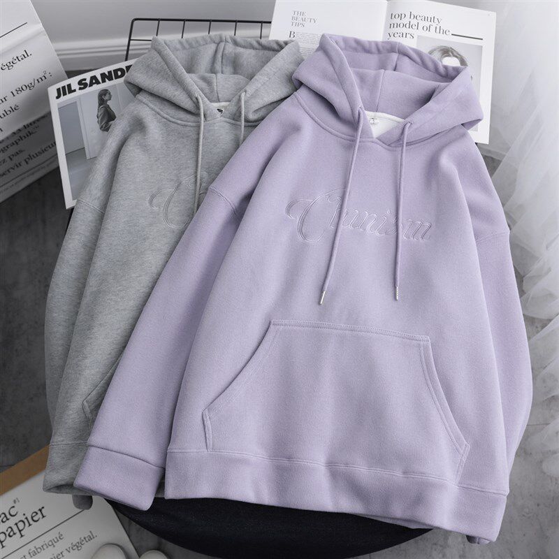 bf慵懒风加绒加厚字母刺绣卫衣女连帽秋冬季韩版大码宽松带帽外套