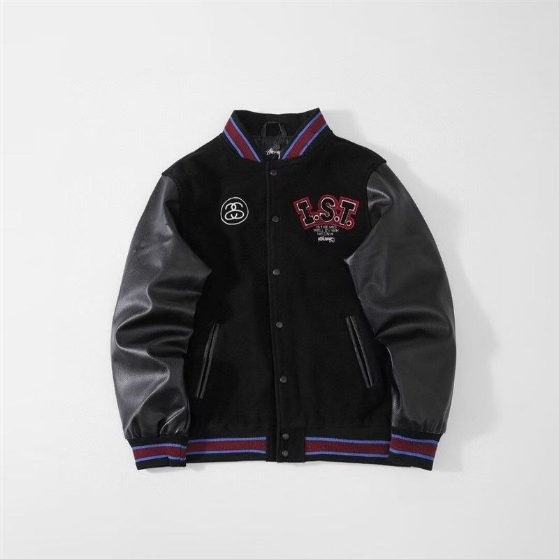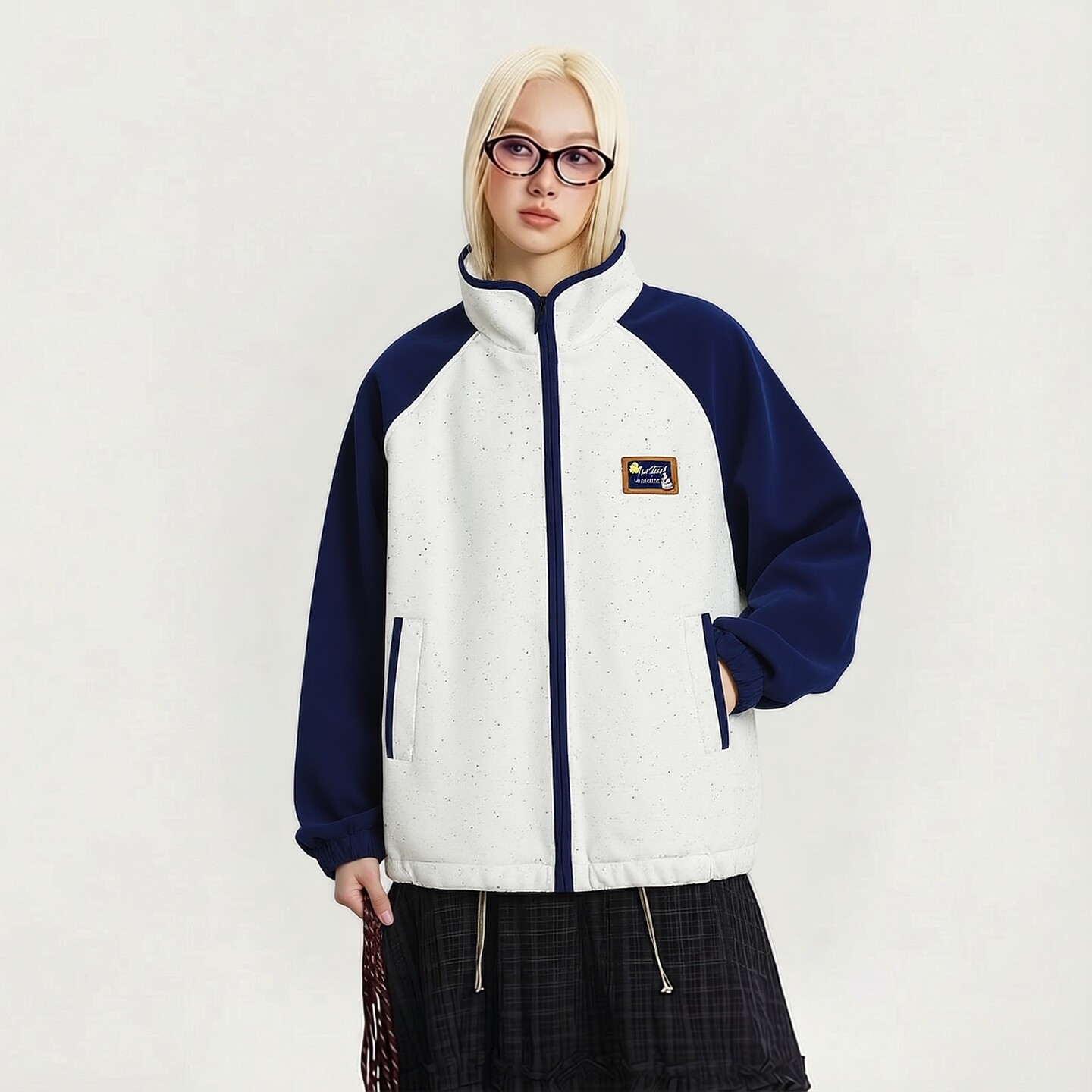 美式复古贴布刺绣撞色拼接立领夹克男女宽松bf美式学院风外套09