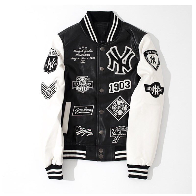 春秋薄款美式BF刺绣棒球服外套男女情侣PU皮衣夹克棉衣服机车外套