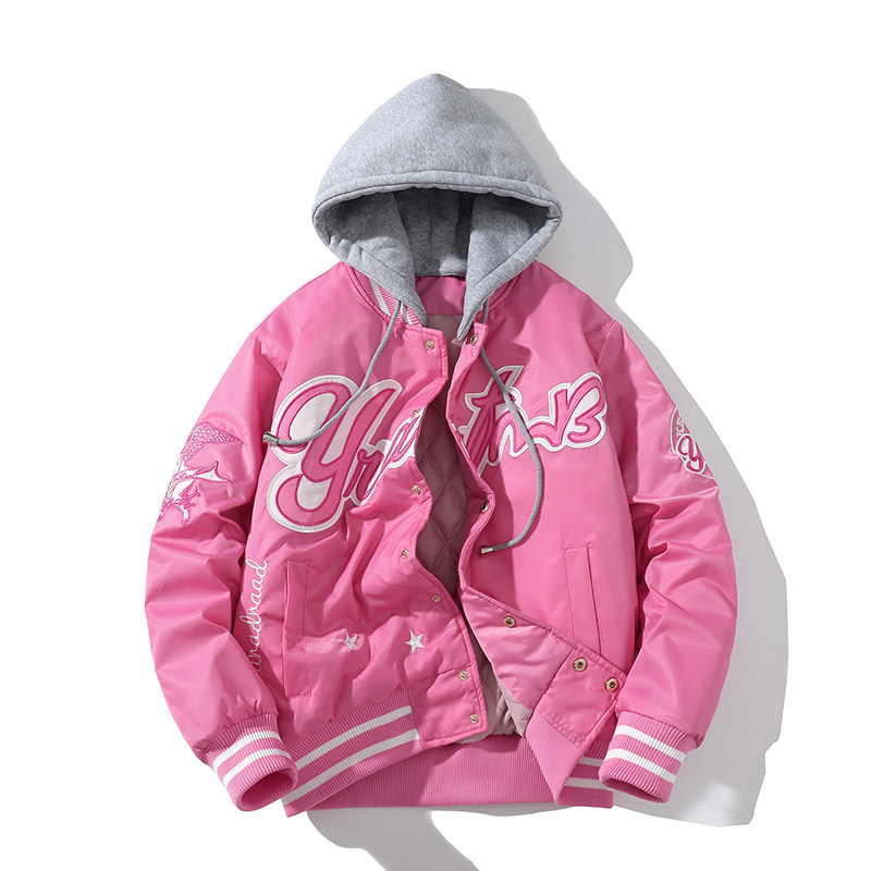 秋冬季加厚粉色棒球服女棉衣ins潮牌bf风宽松刺绣男夹克情侣外套
