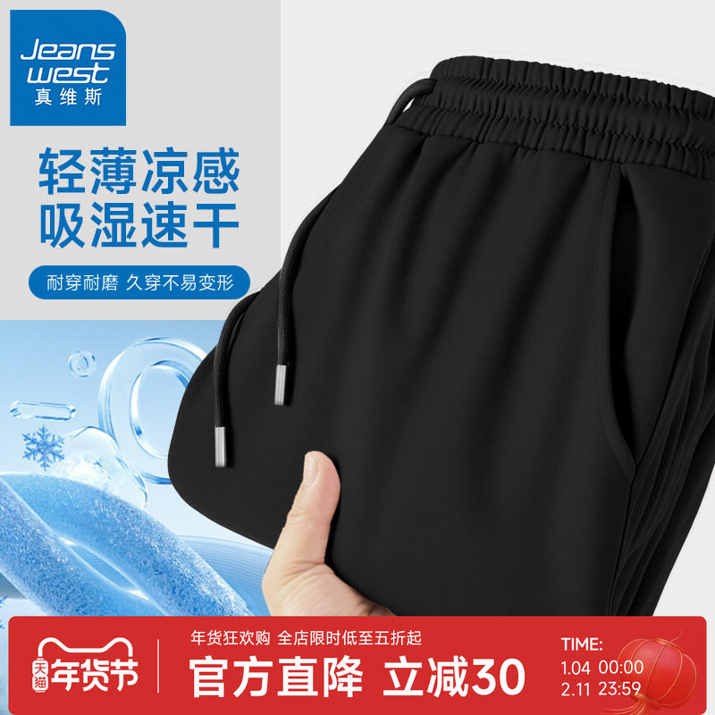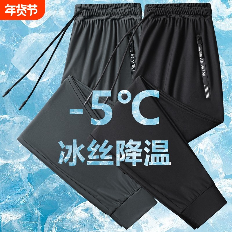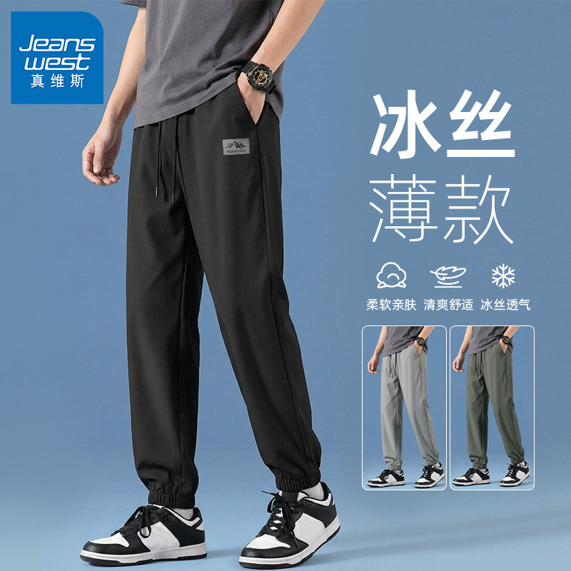 GV真维斯冰丝裤子男款夏季凉感速干裤男士宽松薄款运动束脚裤男B