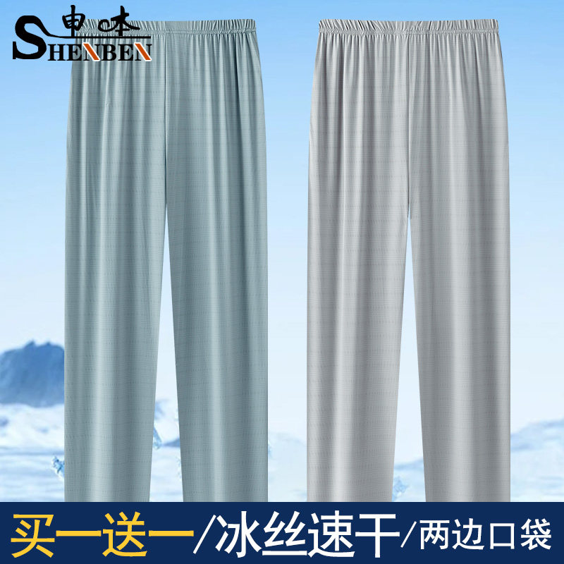 FOG DUNK冰丝裤子男款夏季薄款运动速干裤男士垂感直筒休闲裤子男