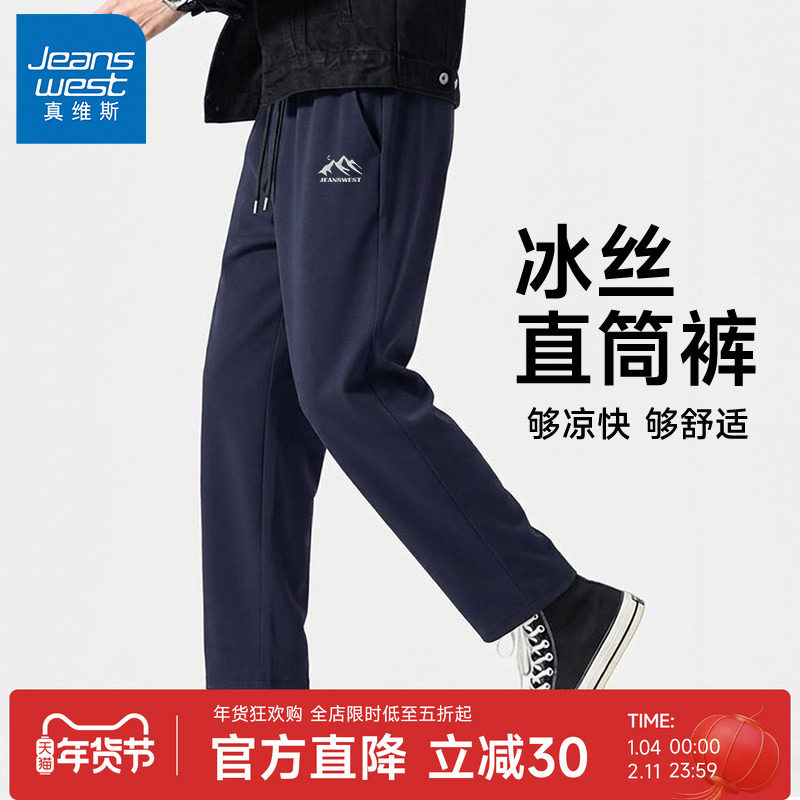 GV真维斯冰丝裤子男款夏季薄款运动速干裤男士凉感直筒休闲裤子A