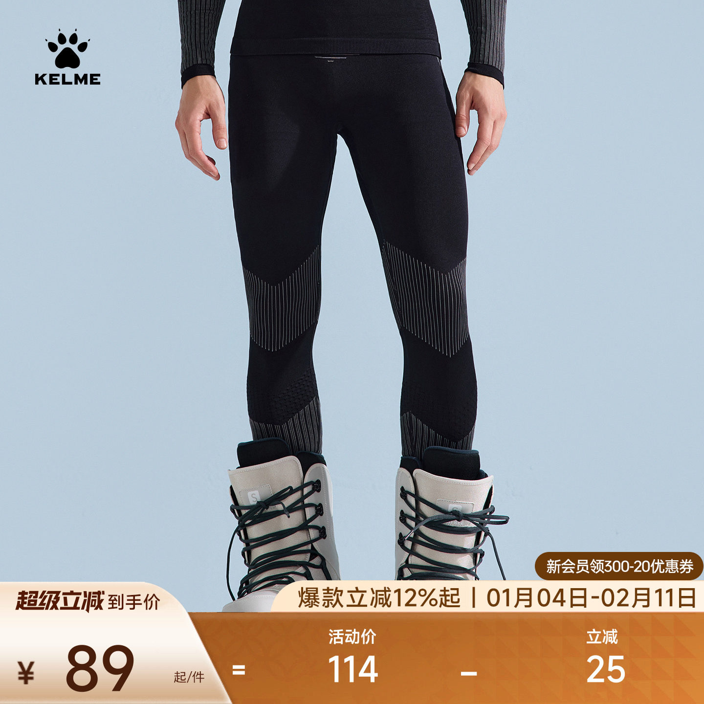 KELME卡尔美运动速干裤男款秋冬针织滑雪户外训练保暖打底压缩裤