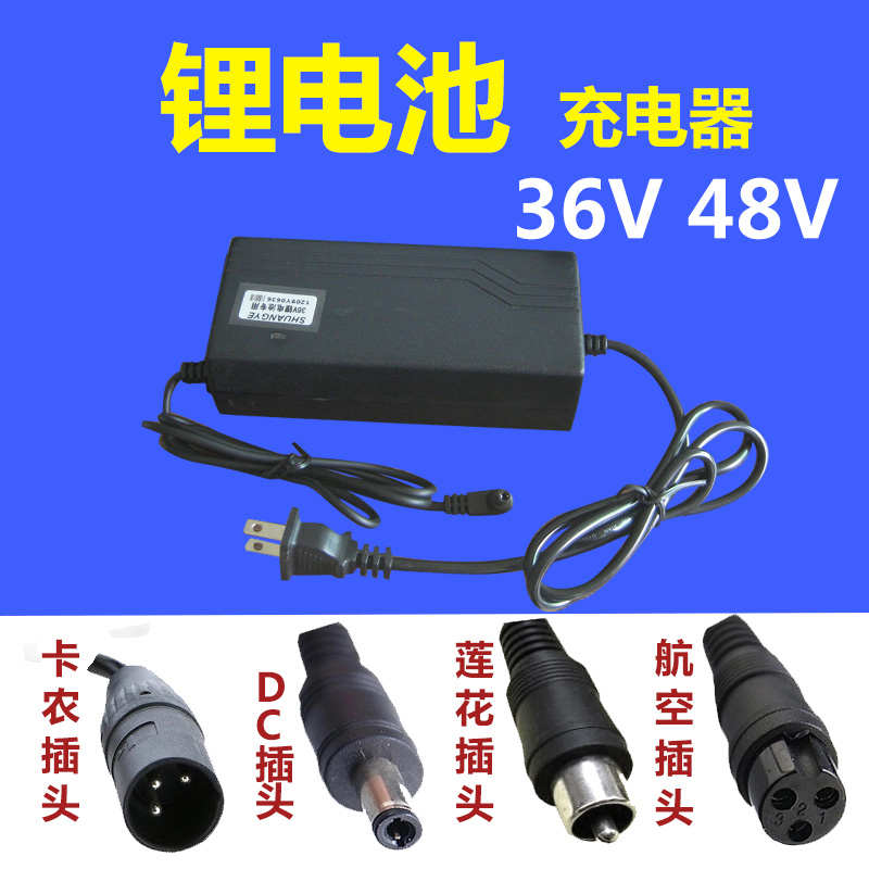 电动车锂电池48V充电器24V36V48V60V2A航空头卡农头视频头品字头