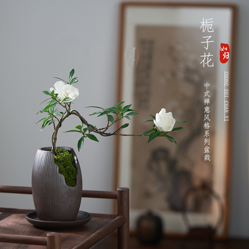栀子花盆栽招财旺宅桌面盆景办公室绿植室内客厅中式禅意四季植物