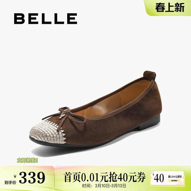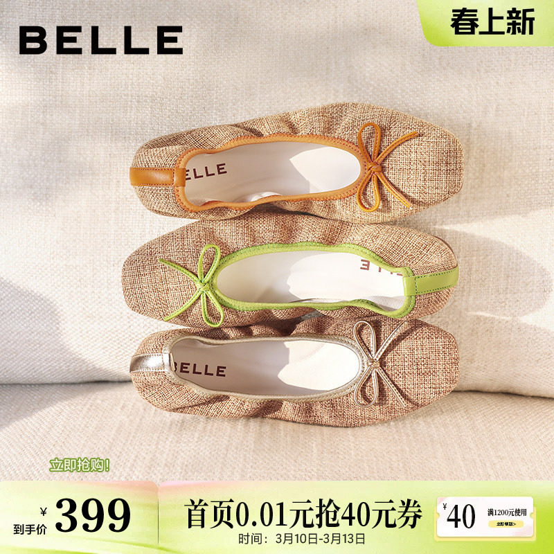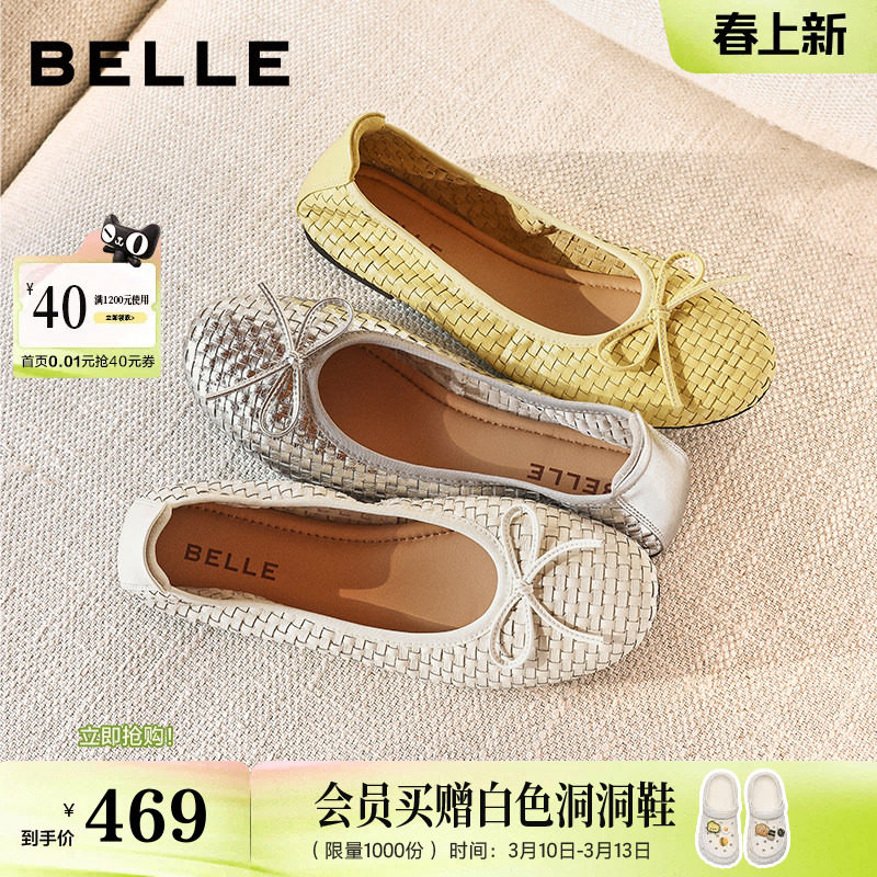 百丽编织平底单鞋女2026新款软底芭蕾蛋卷鞋浅口单鞋子B3039AQ6