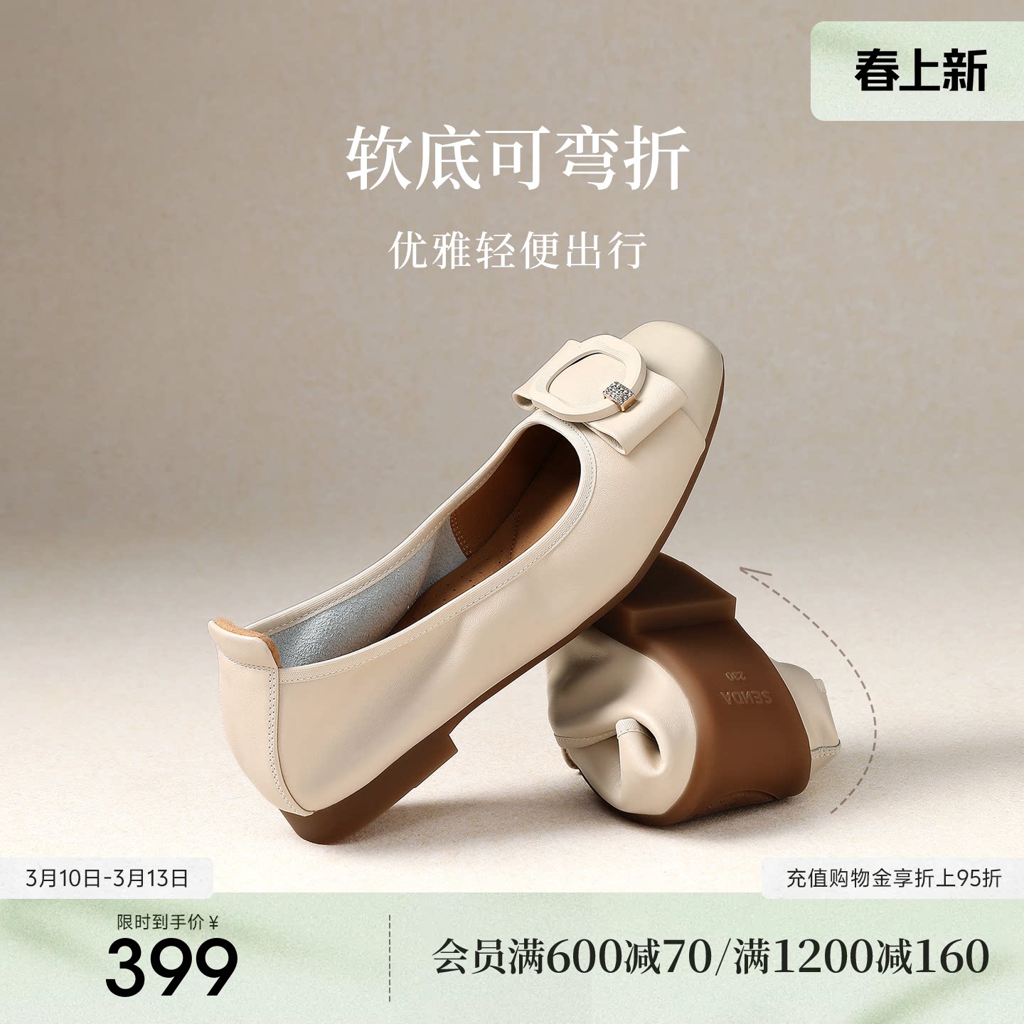 森达软底浅口平底单鞋晚晚鞋芭蕾女鞋蛋卷鞋法式超软小皮鞋ZCC40