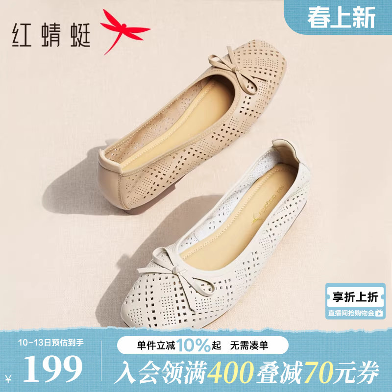 红蜻蜓单鞋女真皮超软小羊皮女鞋皮鞋蛋卷鞋软底妈妈鞋平底鞋船鞋