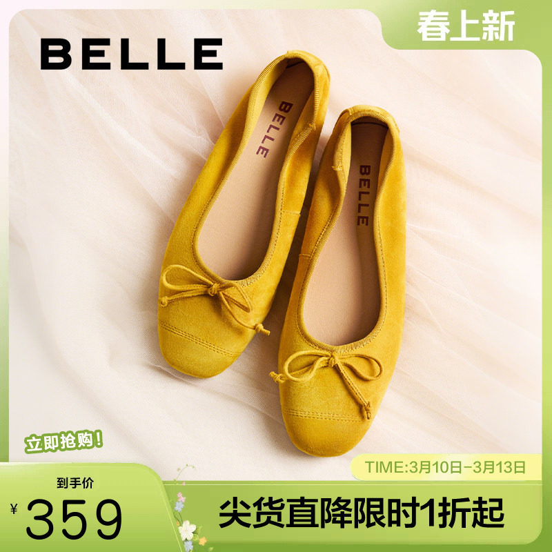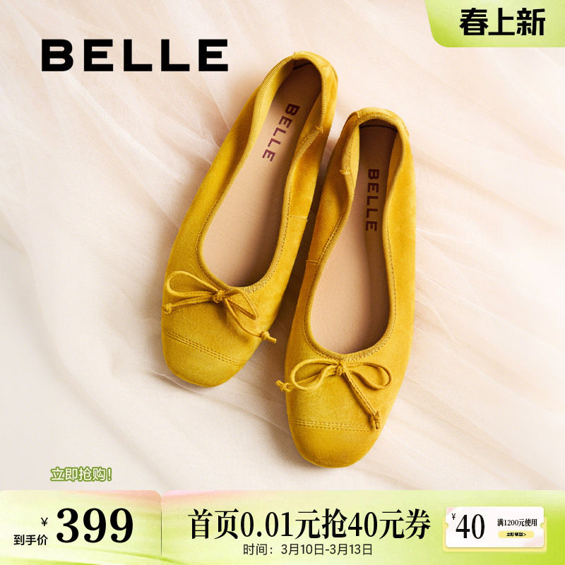 百丽芭蕾黄色羊皮超软平底蛋卷单鞋女新款浅口单鞋子B2770CQ5