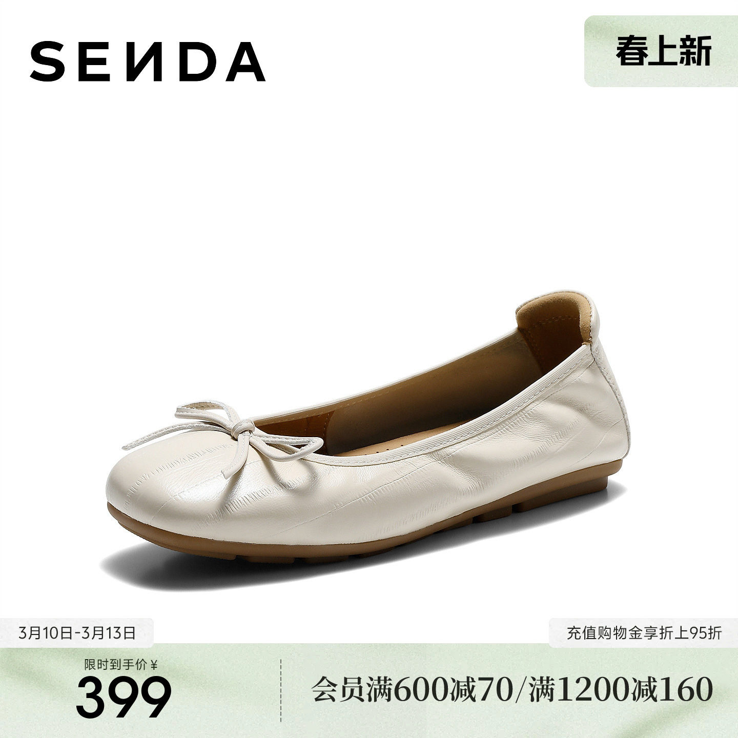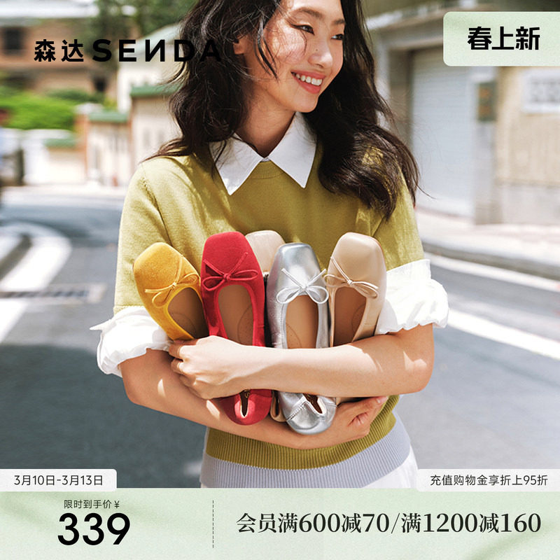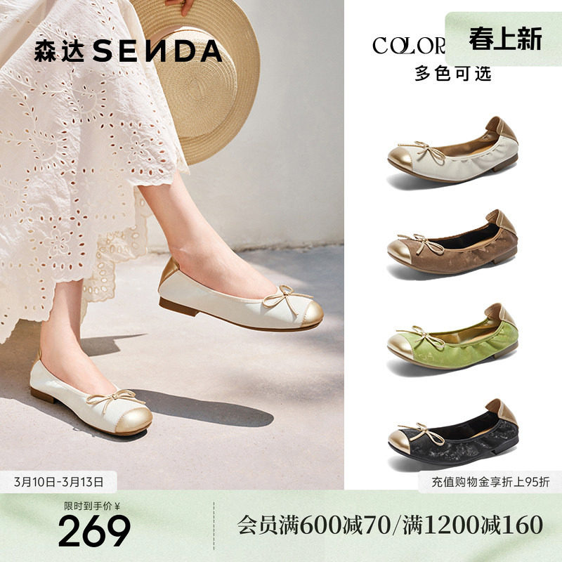 森达羊皮蛋卷鞋软底奶奶鞋女鞋26新款商场芭蕾平底浅口单鞋XZV01