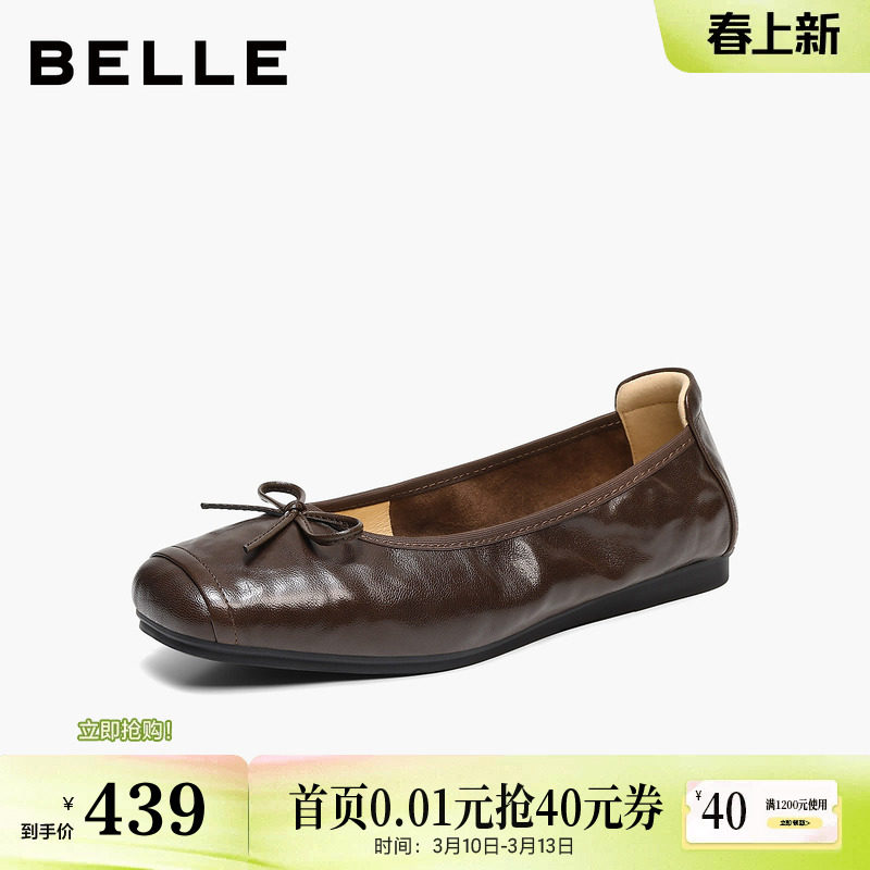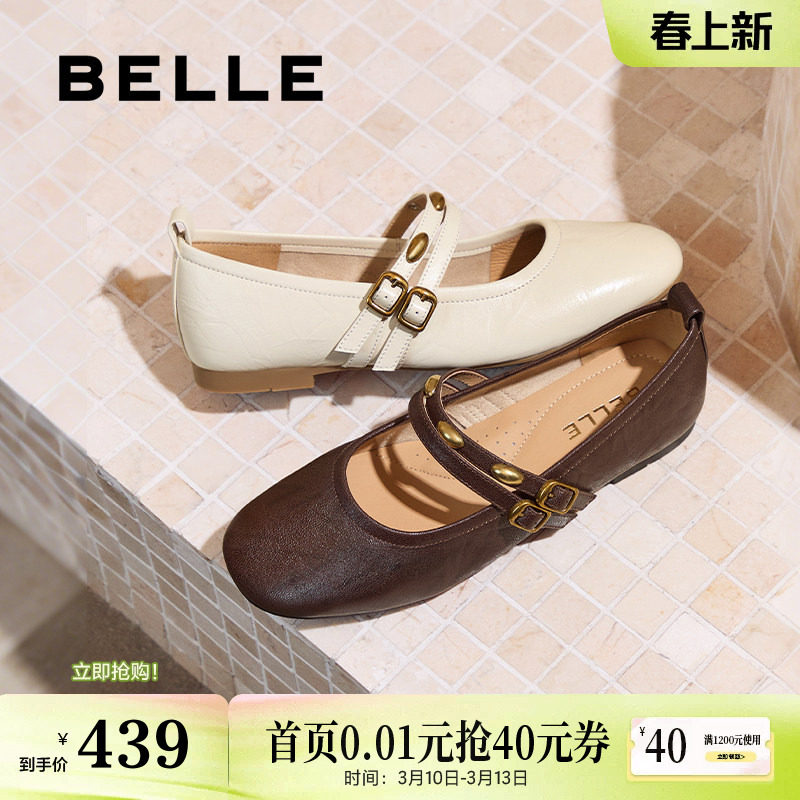 百丽小金豆羊皮芭蕾玛丽珍鞋女新款蛋卷平底浅口单鞋子E1V1DAQ6预
