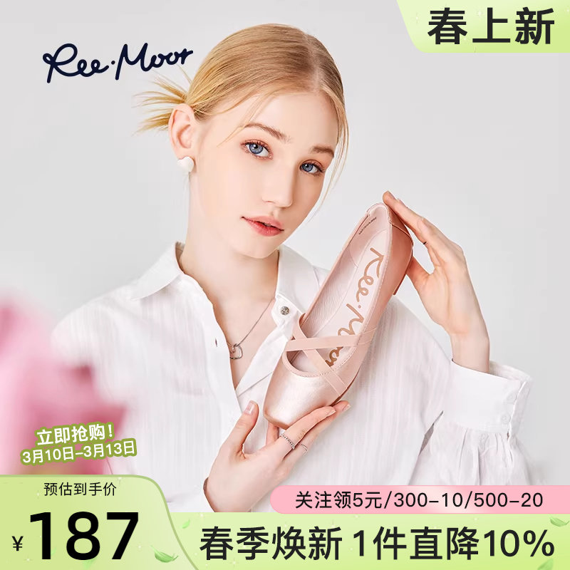 REEMOOR睿慕2026年春季新款蝴蝶结蛋卷鞋圆头浅口平底单鞋女鞋