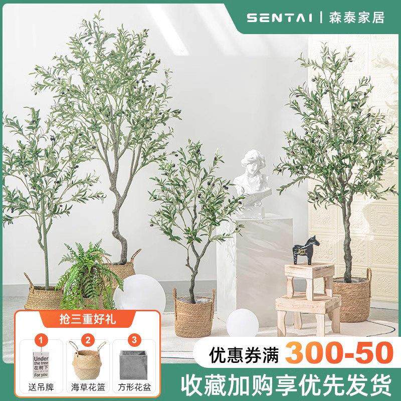 北欧彷真绿色植物假盆栽大型装饰摆饰客厅室内盆景彷真植物橄榄树