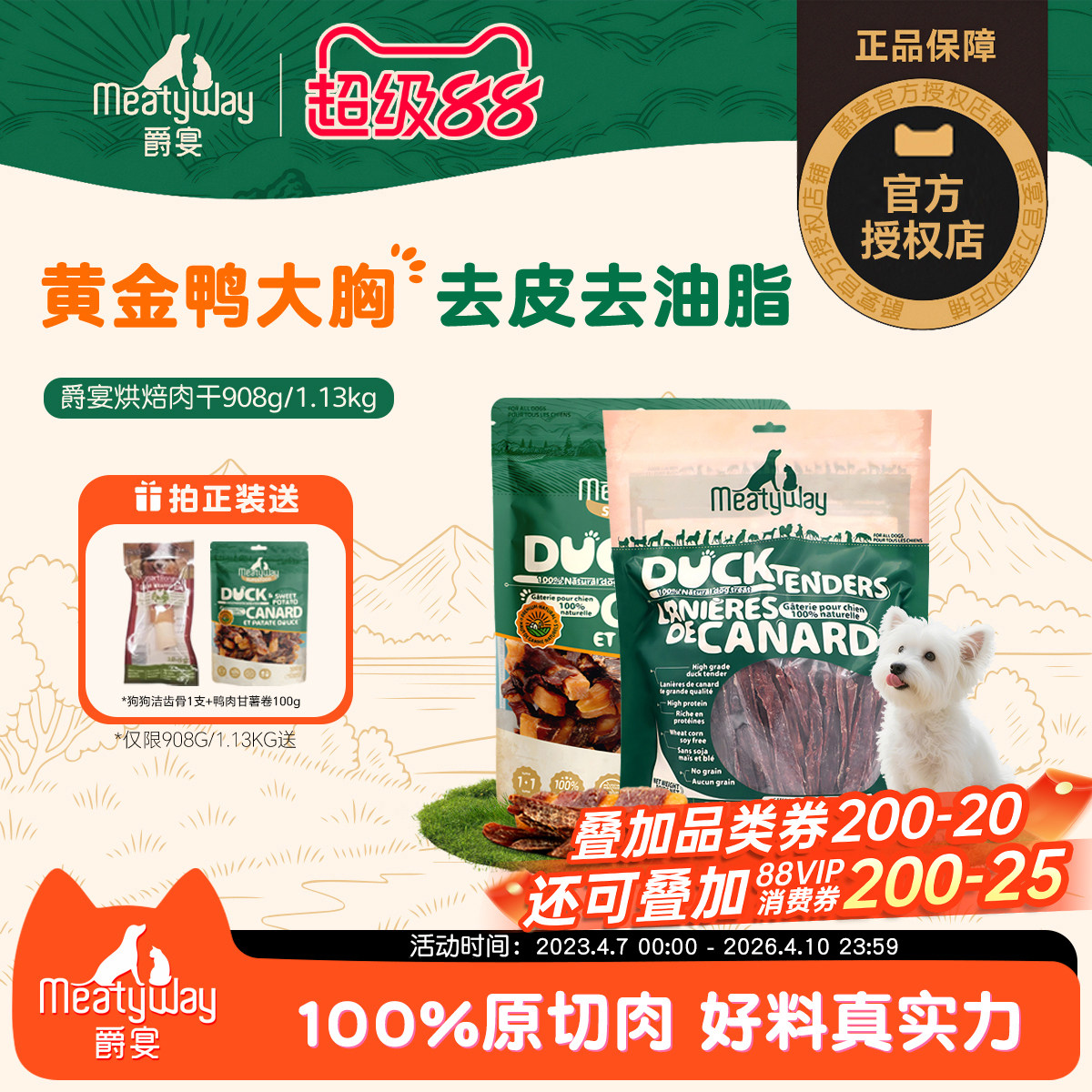 Meatyway爵宴鸭肉干908g/1.13kg鸡肉干磨牙训练成犬爵宴狗狗零食