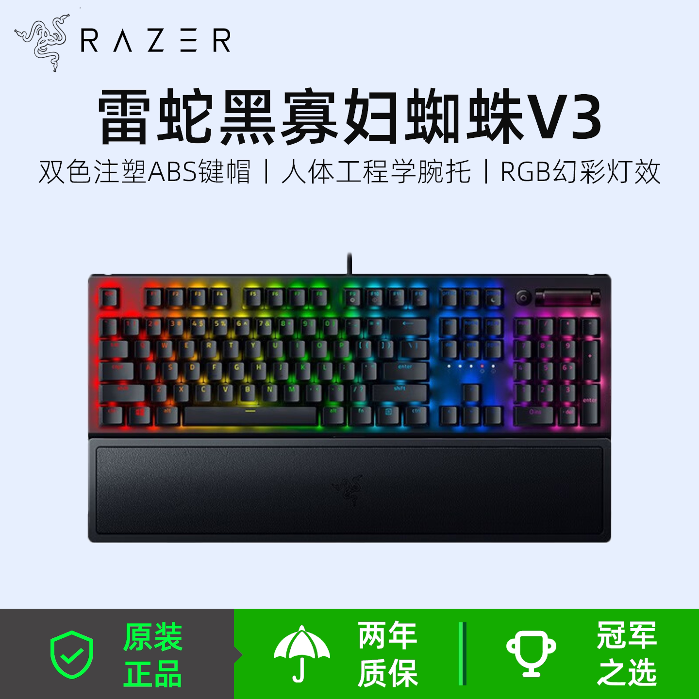 雷蛇(Razer)黑寡妇蜘蛛V3绿轴 RGB游戏电竞机械游戏键盘带腕托