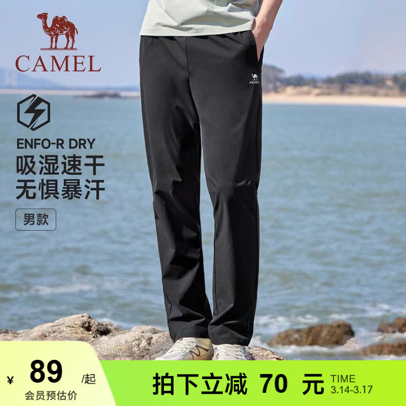骆驼速干运动裤男士夏百搭直筒长裤女户外透气休闲裤健身跑步裤子