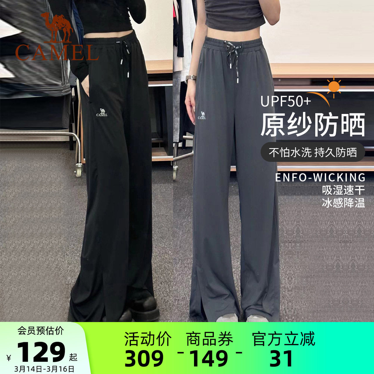 【骆驼小冰裤】防晒裤女休闲阔腿运动裤宽松冰丝速干裤夏季瑜伽裤