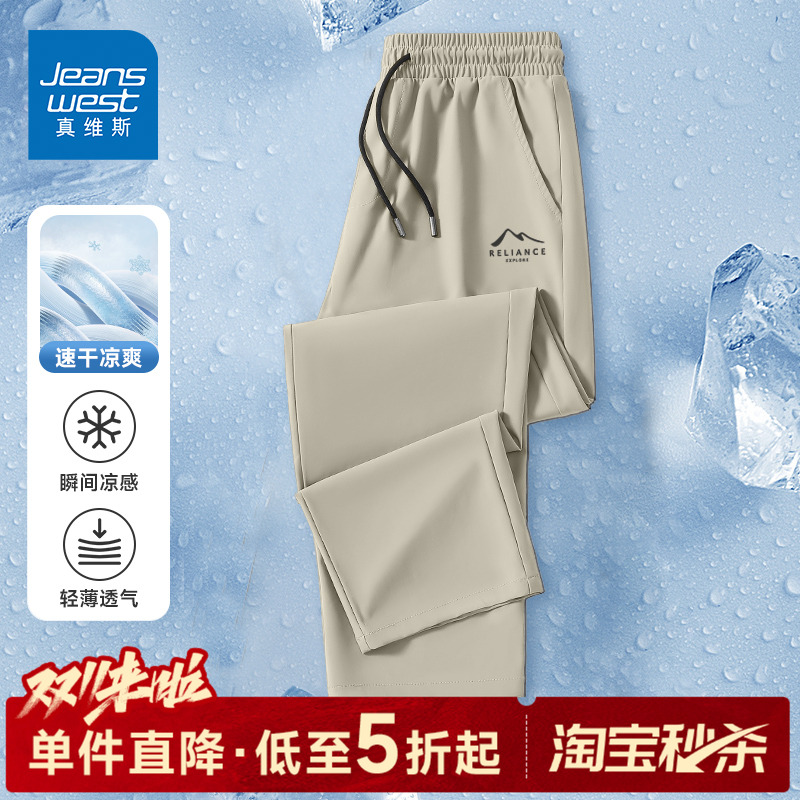 GV真维斯男士夏季薄款裤子冰丝透气速干长裤男款垂感休闲运动裤A