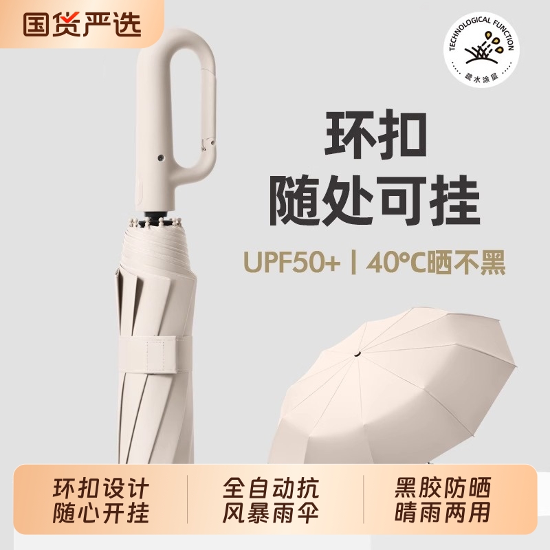 环扣雨伞全自动晴雨伞反向折叠两用伞黑胶防晒太阳伞加大加厚加固