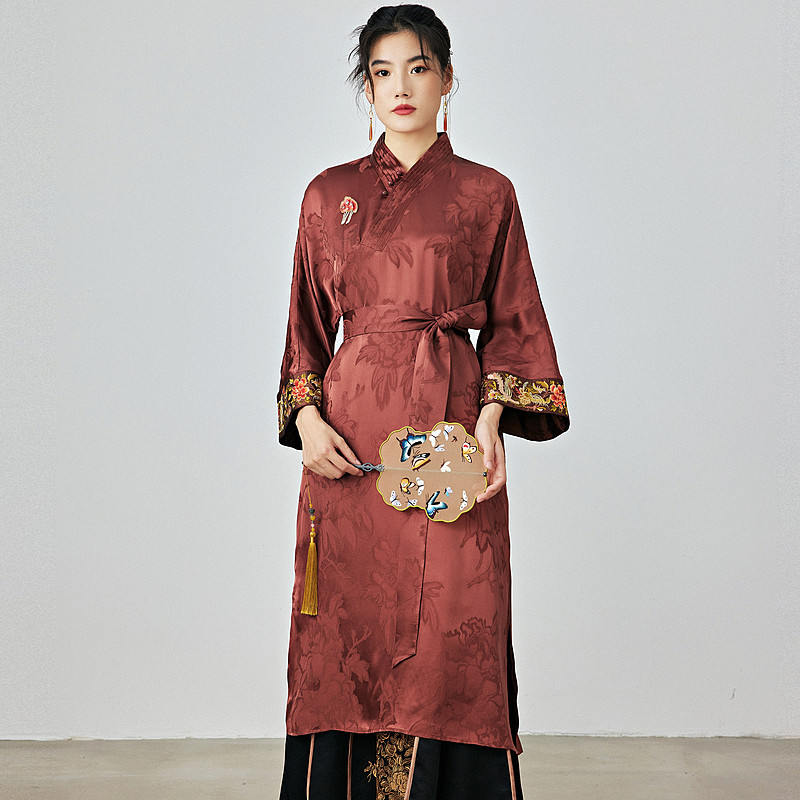 陌遇原创2025秋冬国风女装新款汉元素改良交领刺绣束腰禅意连衣裙