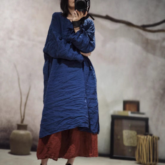 子曰原创复古偏襟手工盘扣宽松亚麻中长袍子女文艺简约禅意连衣裙