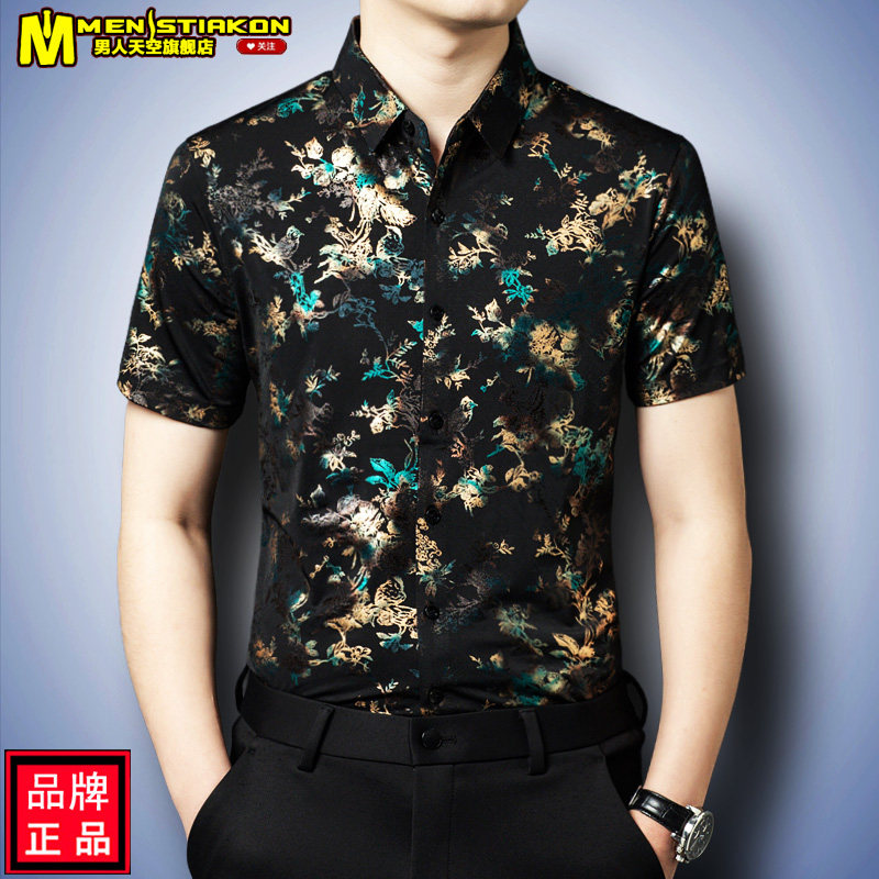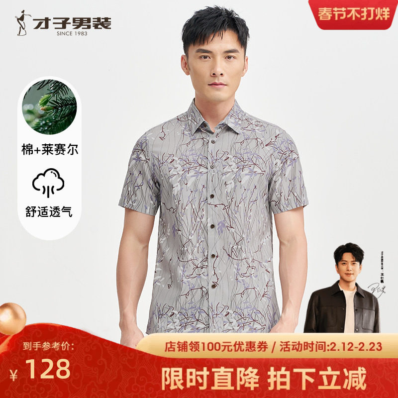 - 图案衬衫男