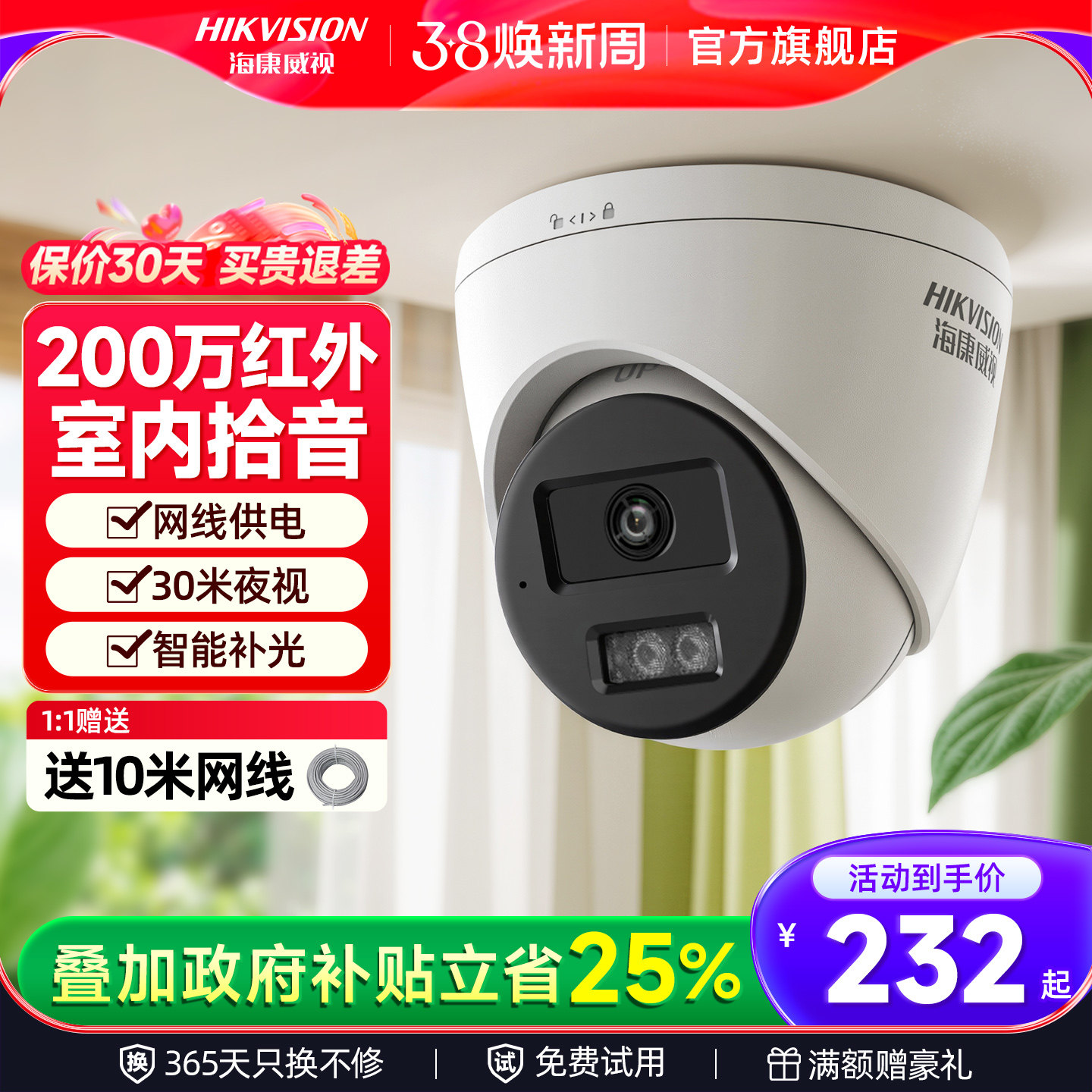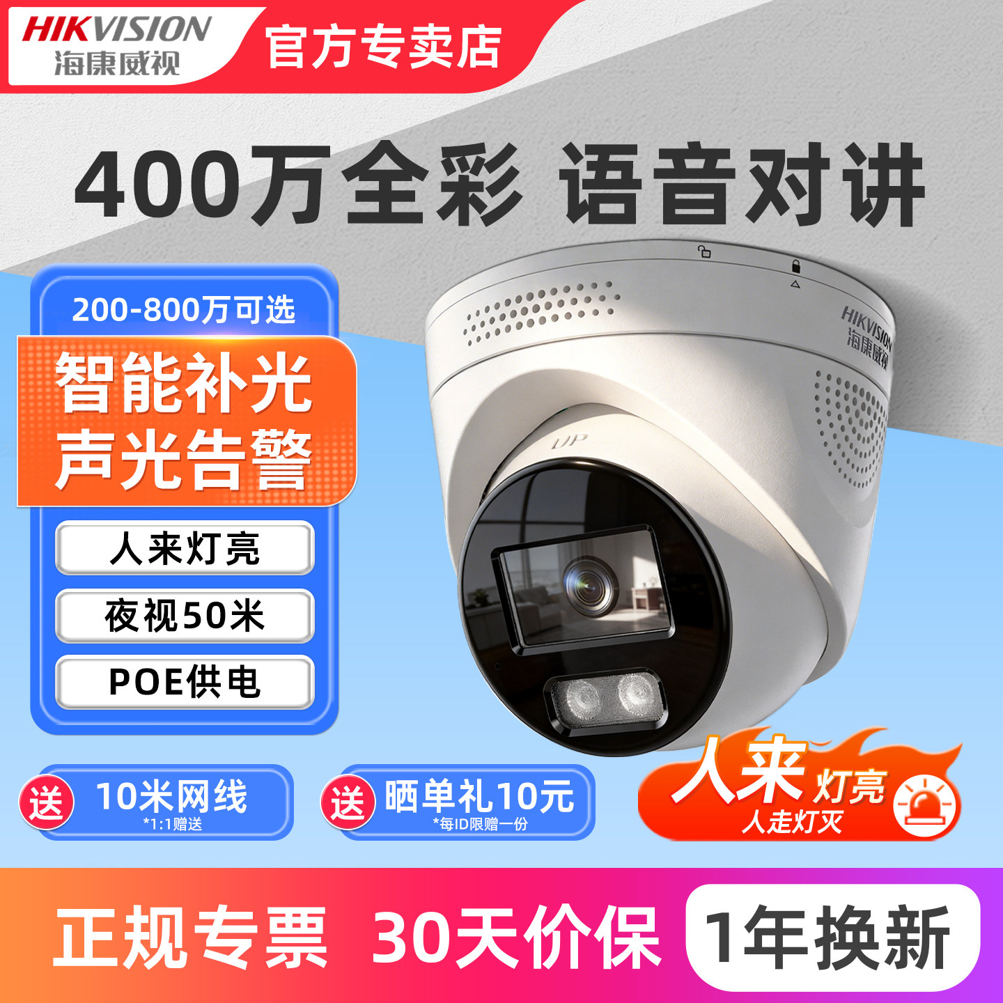 海康威视监控摄影头200/400万POE全彩半球录音摄像头家用摄像机