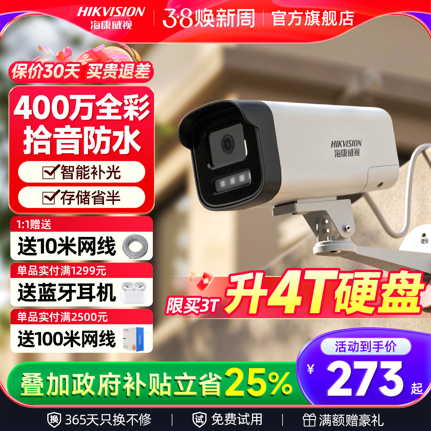 海康威视监控摄影头400/600/800万POE高清夜视全彩家用室外摄像头