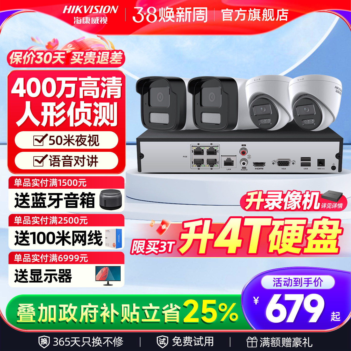 海康威视监控摄影头poe网络手机远程室外高清店铺家用套装摄像机