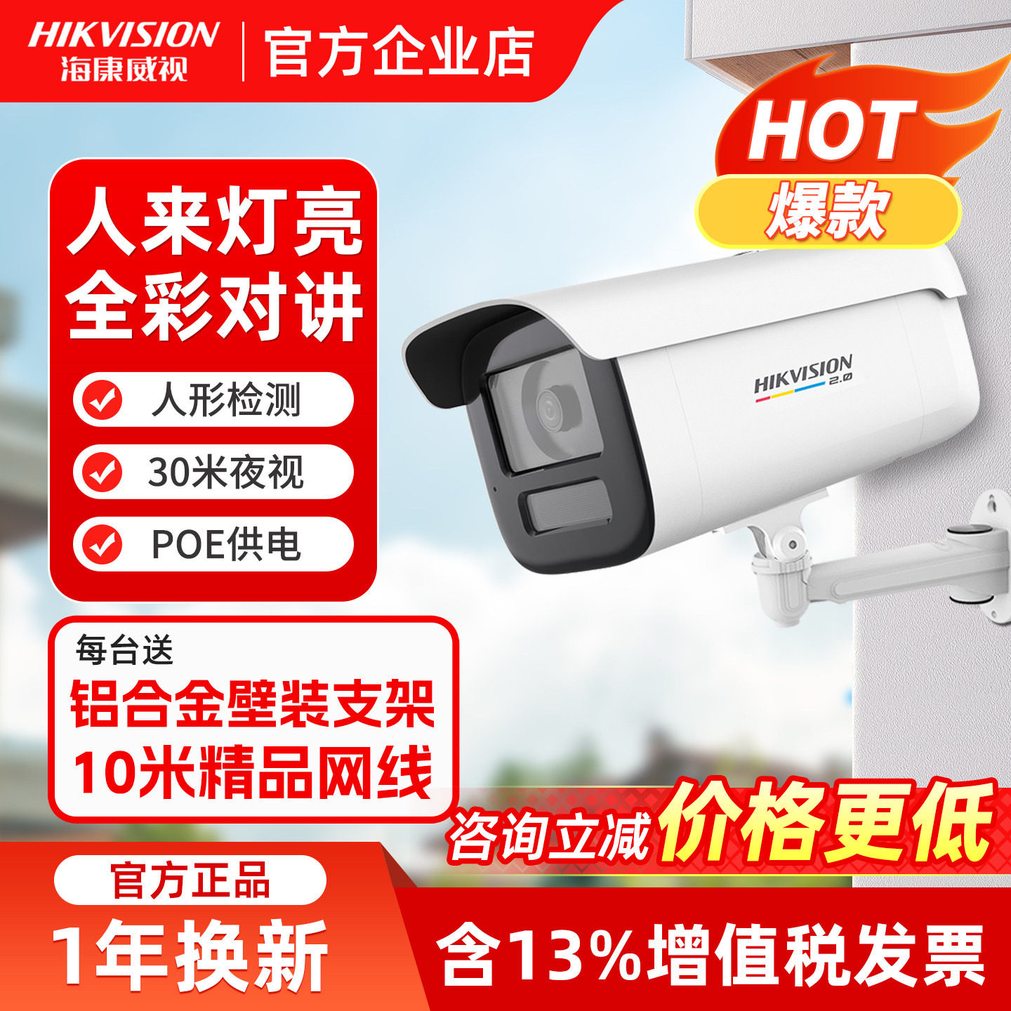 海康威视全彩监控摄像头200/300/400万高清红外夜视POE室内外枪机