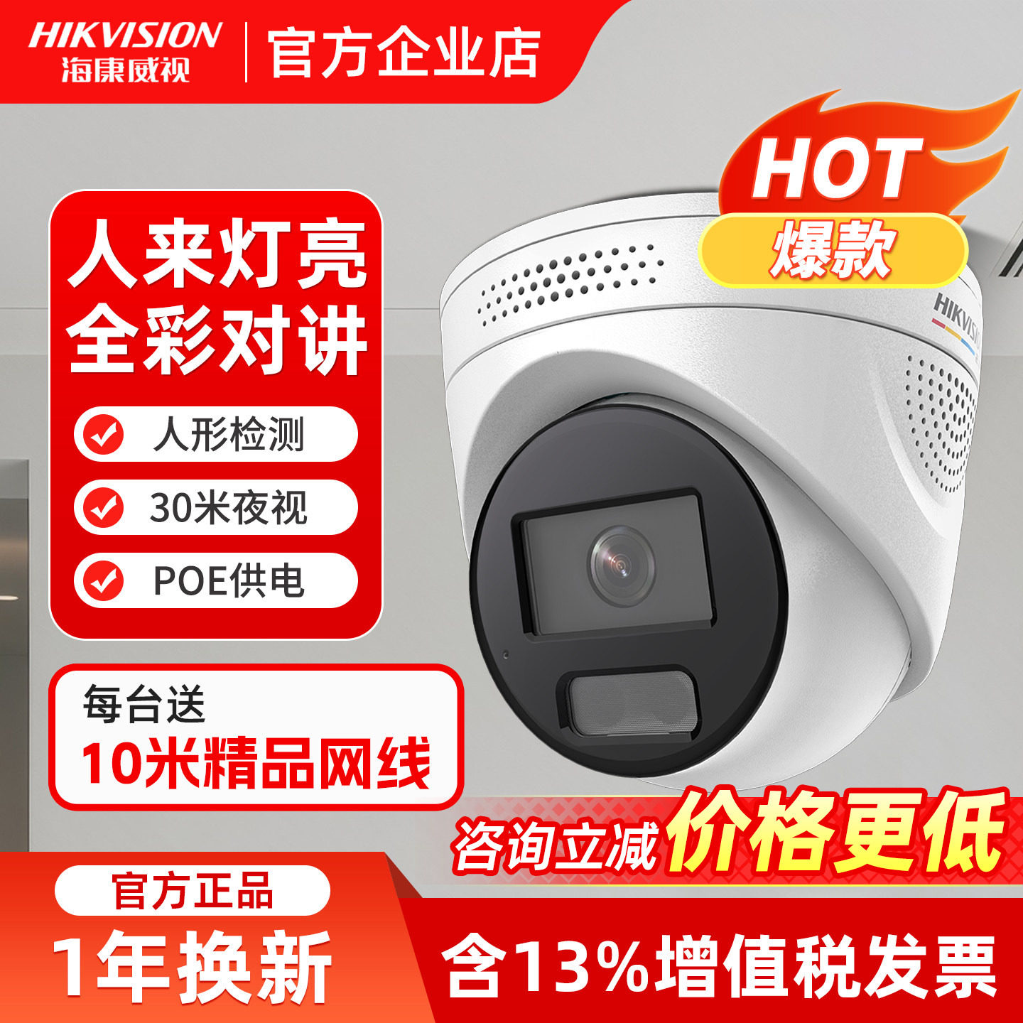海康威视监控摄像头400万600万全彩夜视POE半球家用手机远程摄影