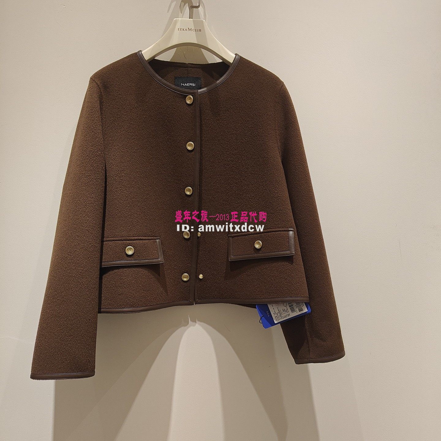 NAERSI娜尔思毛呢大衣NL00869E5专柜正品冬新款绵羊毛外套原5390