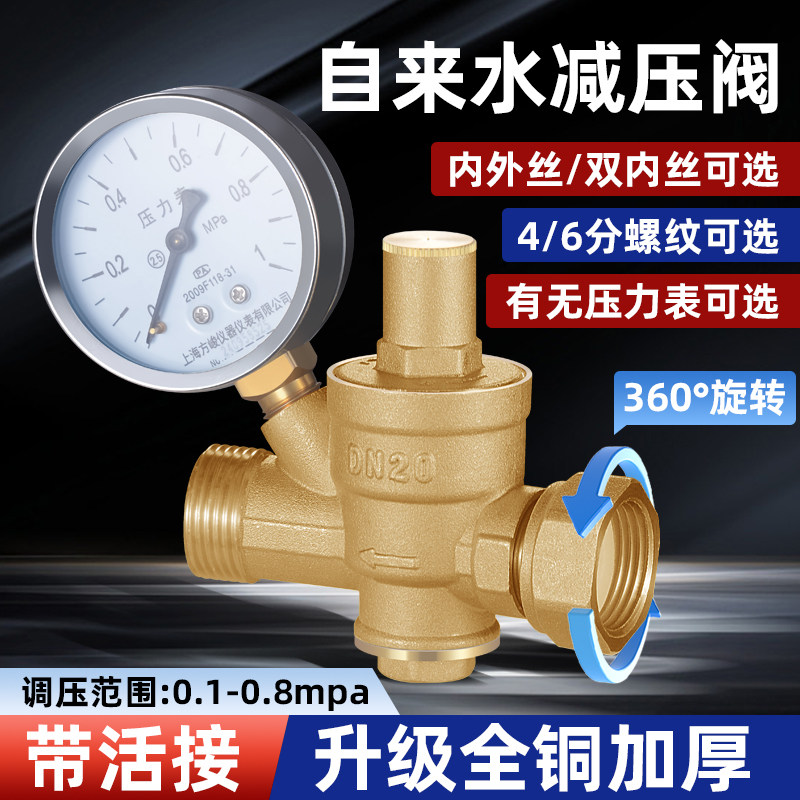 6分家用自来水黄铜减压阀4分净热水器稳压阀内外丝活接恒压可调式