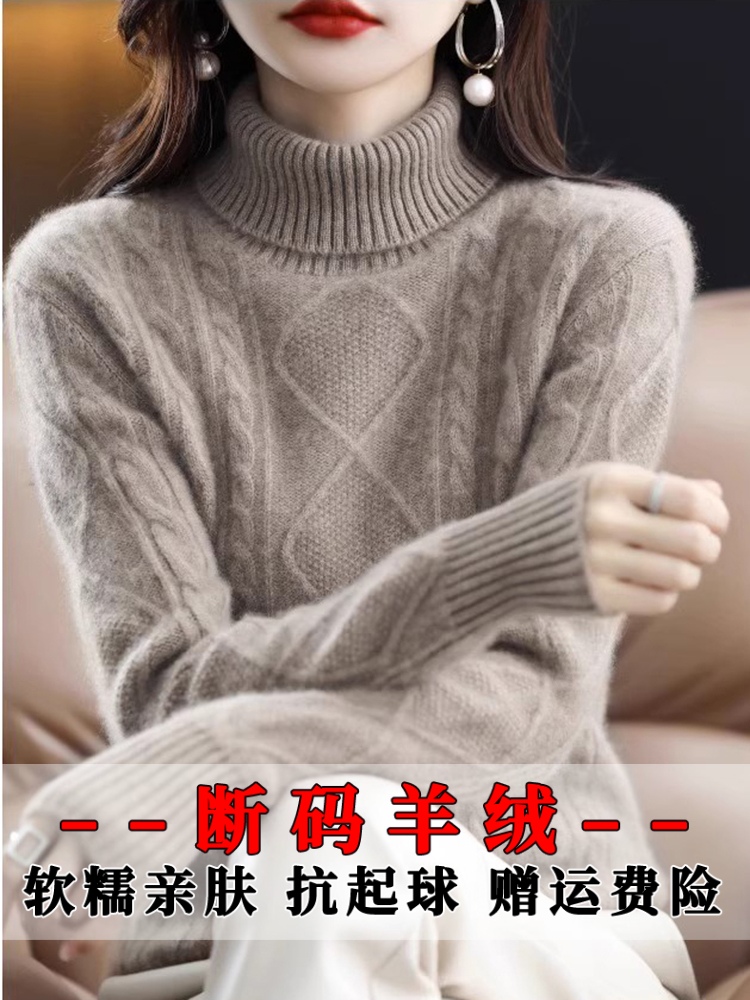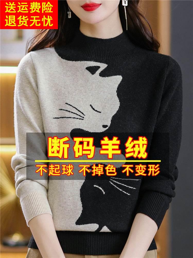 鄂尔多斯市羊绒衫2024秋冬新款100纯羊毛打底衫半高领宽松毛衣女