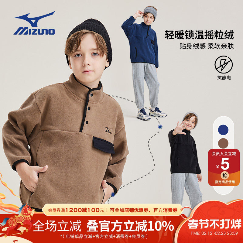 Mizuno美津浓儿童卫衣套头摇粒绒秋冬加绒保暖打底衫男童女童外套