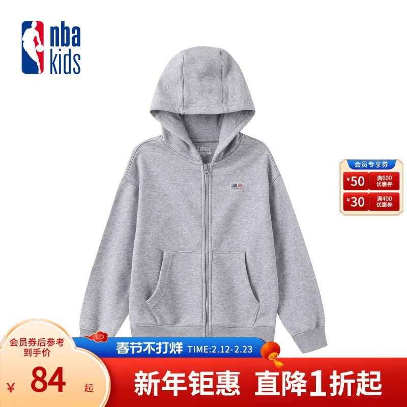 nbakids童装秋冬男童女童连帽外套简约卫衣宽松K243TJ001P