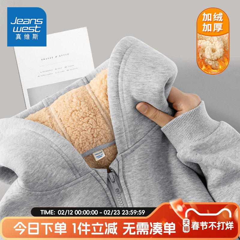 真维斯童装男童外套儿童秋冬款2026新款上衣大童加绒连帽卫衣开衫