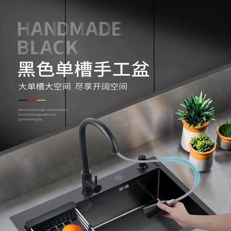 纳米厨房水槽单槽手工加厚SUS304不锈钢黑色家用洗菜盆洗碗盆水池