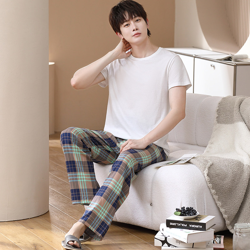 莫代尔男士直筒长裤睡裤男夏季宽松防蚊裤休闲居家裤薄款家居裤潮