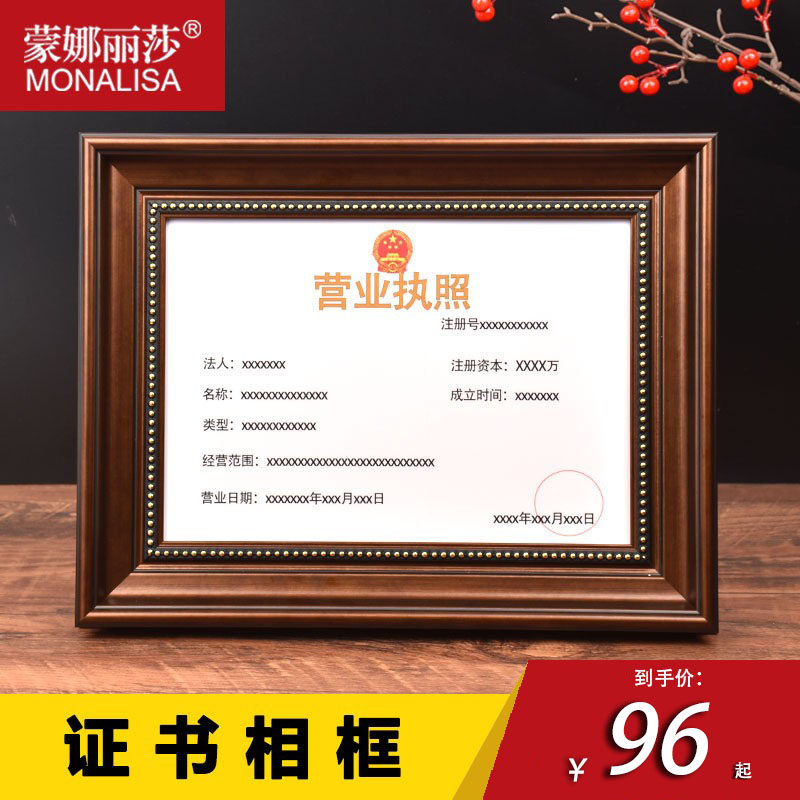 蒙娜丽莎monalisa营业执照框证书框A3A4执照框专利证书装裱框摆台