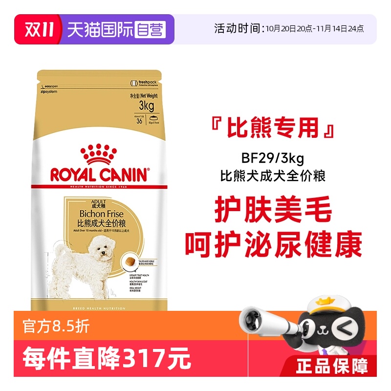 皇家狗粮比熊犬成犬全价粮BF29/3KG小型犬专用高端粮官方正品