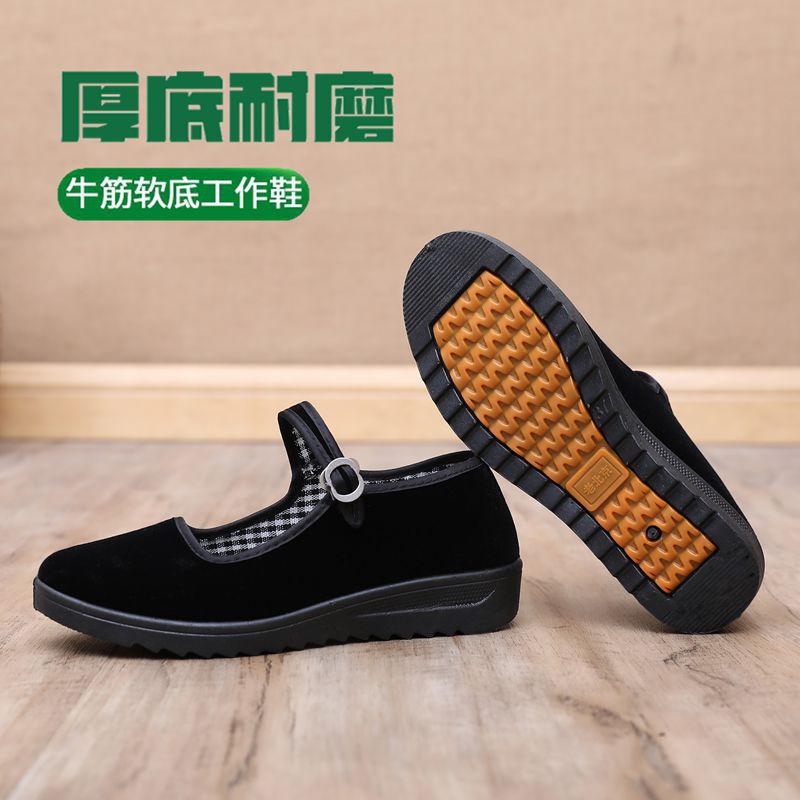 夏季透气老北京布鞋女平底防滑软底工作鞋黑色酒店上班妈妈舞蹈鞋