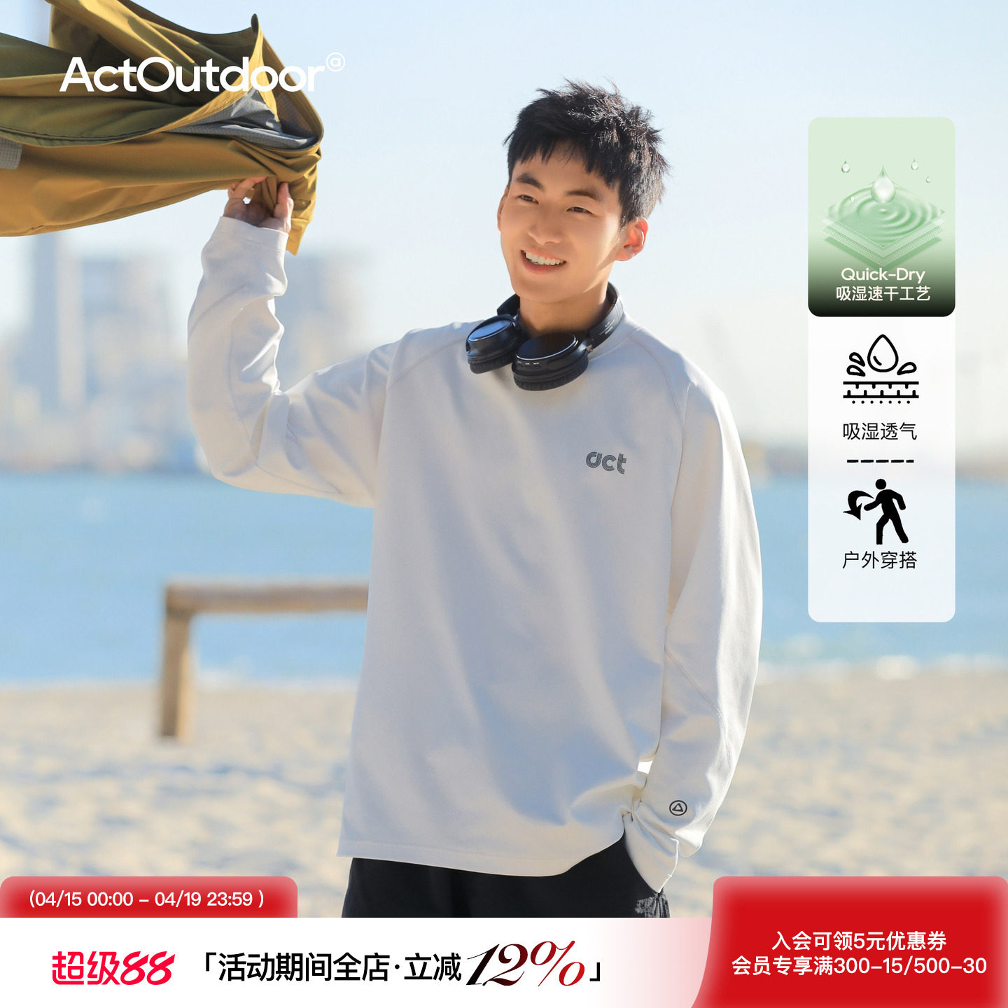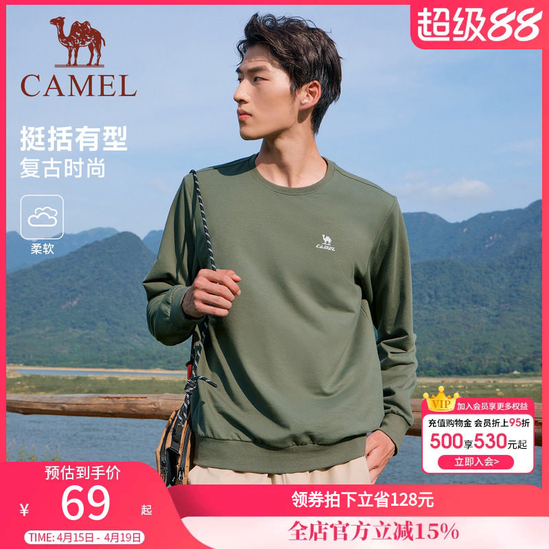 骆驼运动圆领套头卫衣男士宽松显瘦百搭薄款长袖打底衫休闲T恤女
