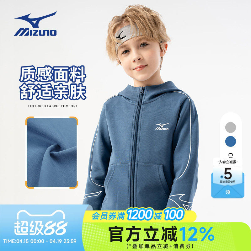 Mizuno美津浓KIDS外套男女中大儿童长款连帽卫衣休闲春秋薄款