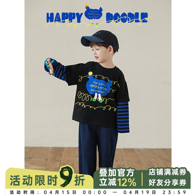 幼悠男童2026新款长袖圆领涂鸦假两件卫衣春秋潮牌轻薄宽松上衣潮
