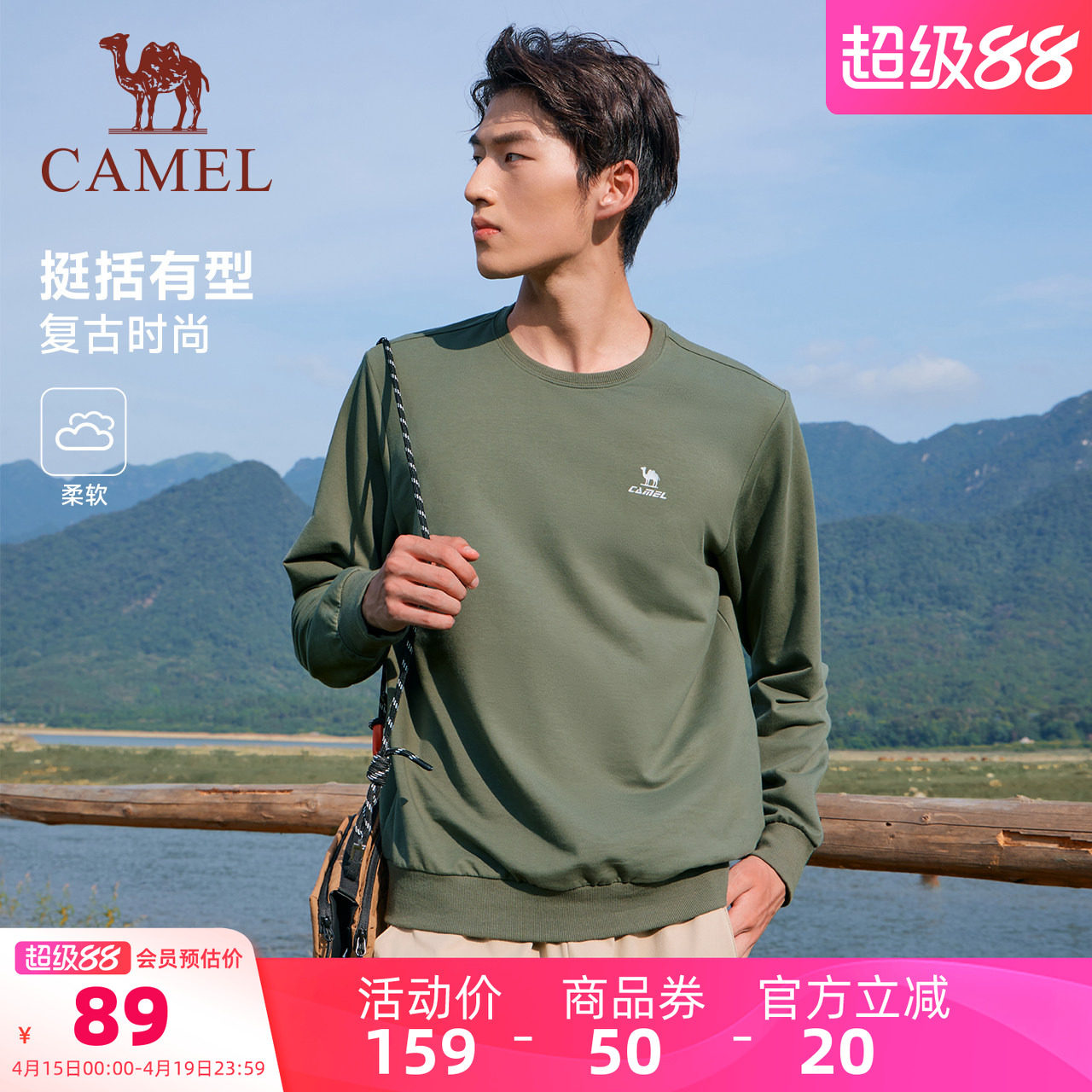 骆驼圆领长袖套头卫衣男士2026春季时尚宽松薄款休闲运动上衣女