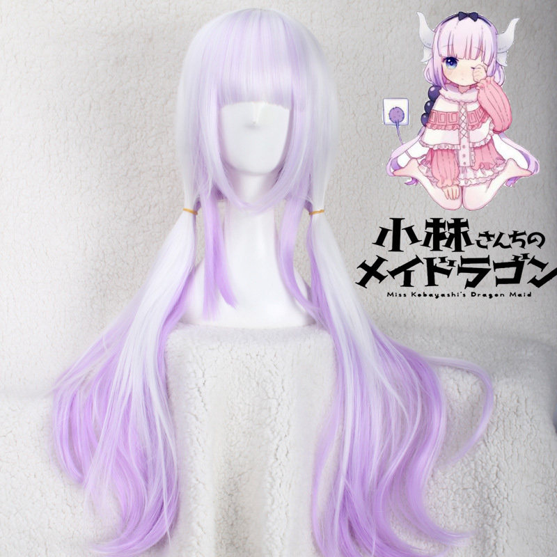 小林家的龙女仆 康娜cosplay假发动漫原宿风 浅紫灰双马尾长发