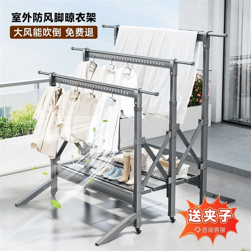 室外晾衣架防风户外落地阳台露台别墅庭院可移动折叠铝合金晒衣架