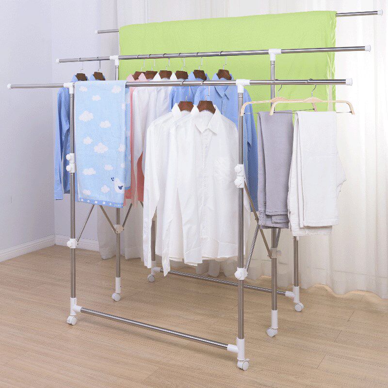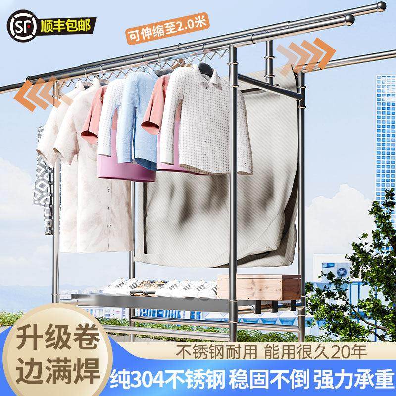 落地晾衣架折叠不锈钢家用阳台室内室外伸缩凉衣杆室内晒被子神器